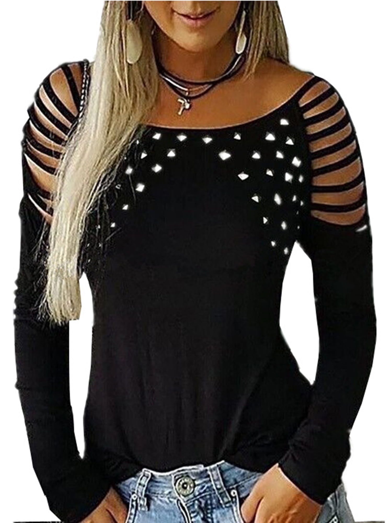 Plus Size Women Crew Neck Hollow Out Studded Long Sleeve T Shirt Blouse Ladies Casual Cold Shoulder Autumn Tee Tops Walmart Com