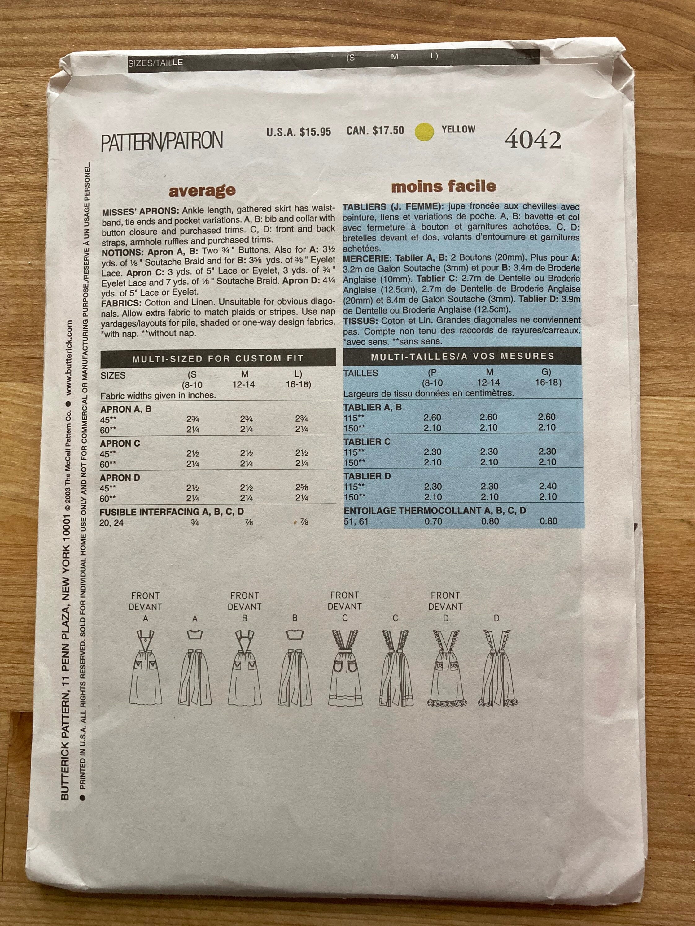 Turn Of Century Misses Maids Apron Pattern By Butterick 4042 Etsy